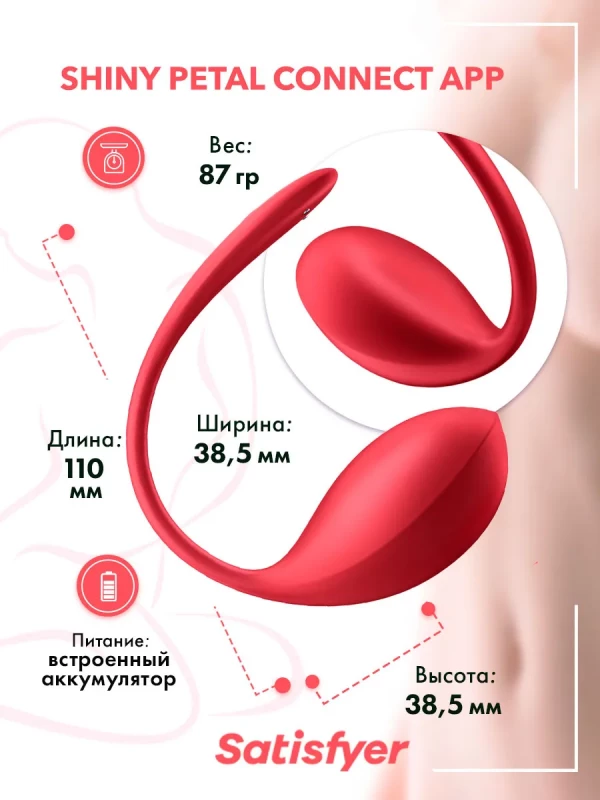 Виброяйцо на дистанционном управлении "Satisfyer Shiny Petal" + приложение, красное